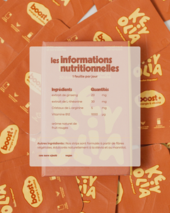 Important : Les résultats varient selon chacun. BOOST+ soutient votre énergie naturelle, mais rien ne remplace une bonne alimentation, une hydratation suffisante et un sommeil régulier.